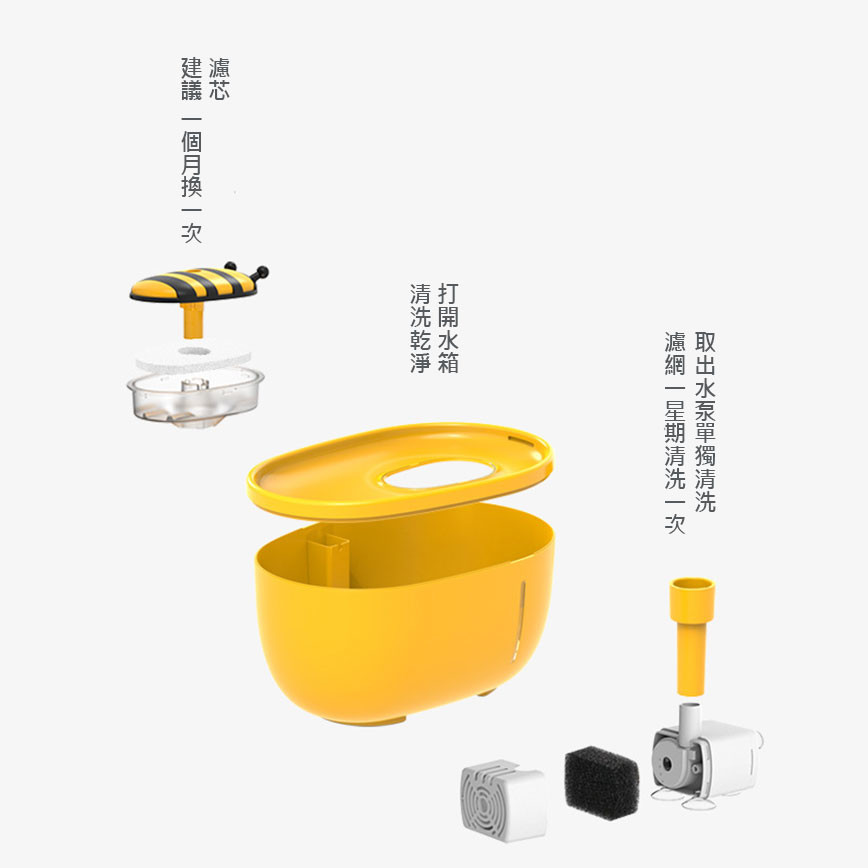 首頁 > 貓犬用 > 貓犬用日常用品 > 飲食用具 > 小蜜蜂飲水機 USB自動循環飲水器 黃色