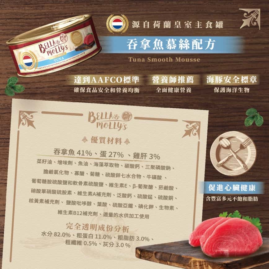 Bella & Molly's 荷蘭罐 貓罐頭 AAFCO 主食罐 提升免疫力 吞拿魚慕絲 80g