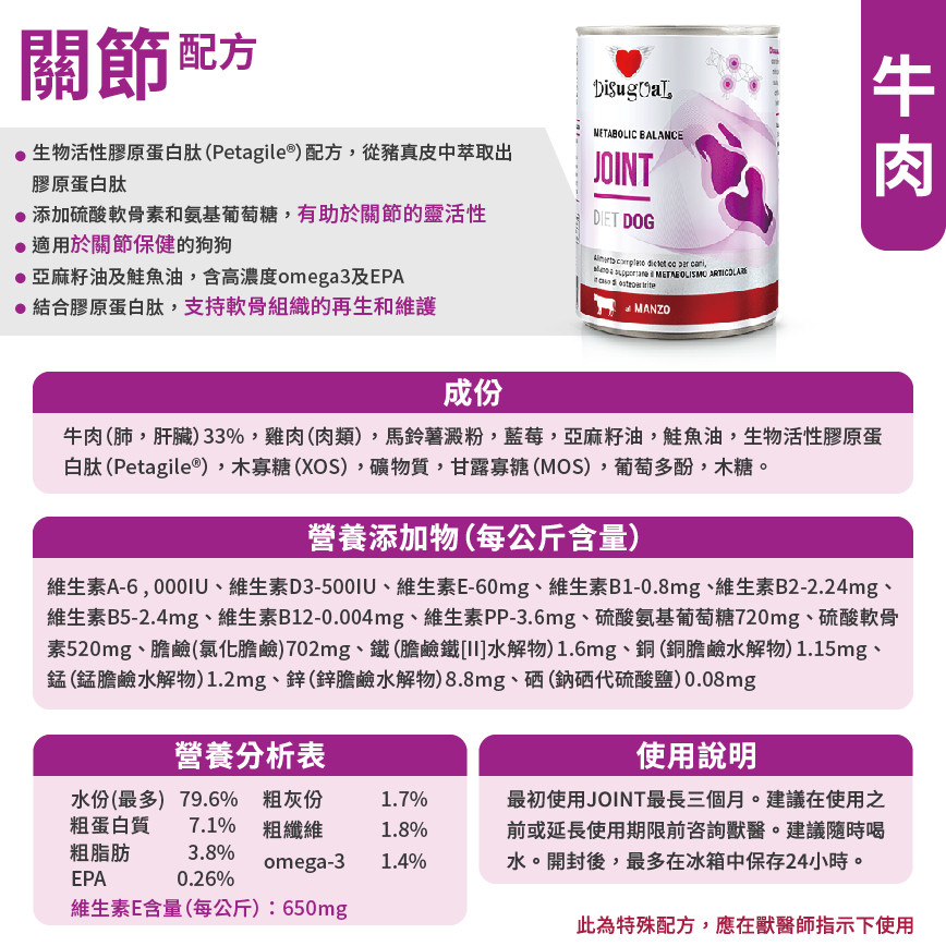 Disugual 意極鮮 處方糧 狗罐頭 關節保健配方 牛肉 400g (DSDT040) | 意大利製造