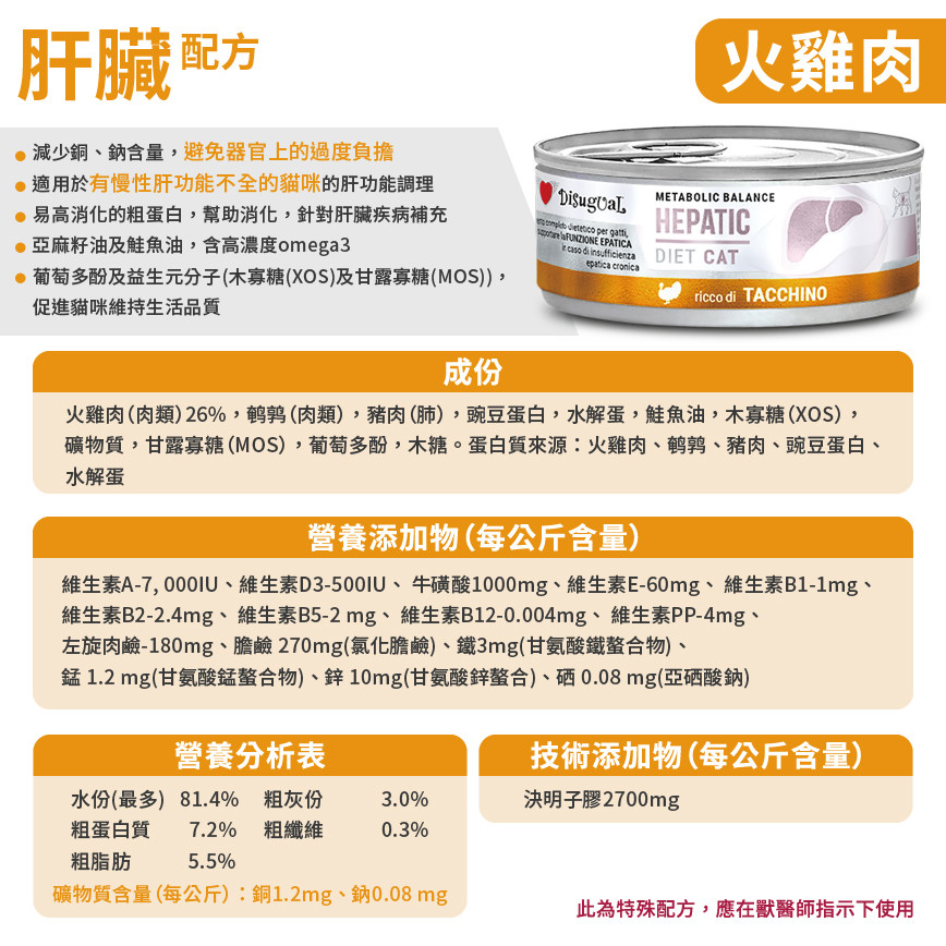 Disugual 意極鮮 處方糧 貓罐頭 肝臟配方 火雞 85g (DSDTG091) | 意大利製造 - 限時優惠價