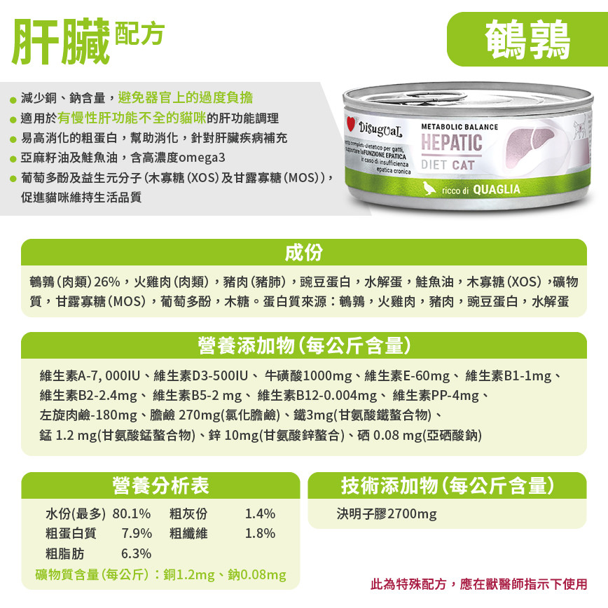 Disugual 意極鮮 處方糧 貓罐頭 肝臟配方 鵪鶉 85g (DSDTG090) | 意大利製造 - 限時優惠價
