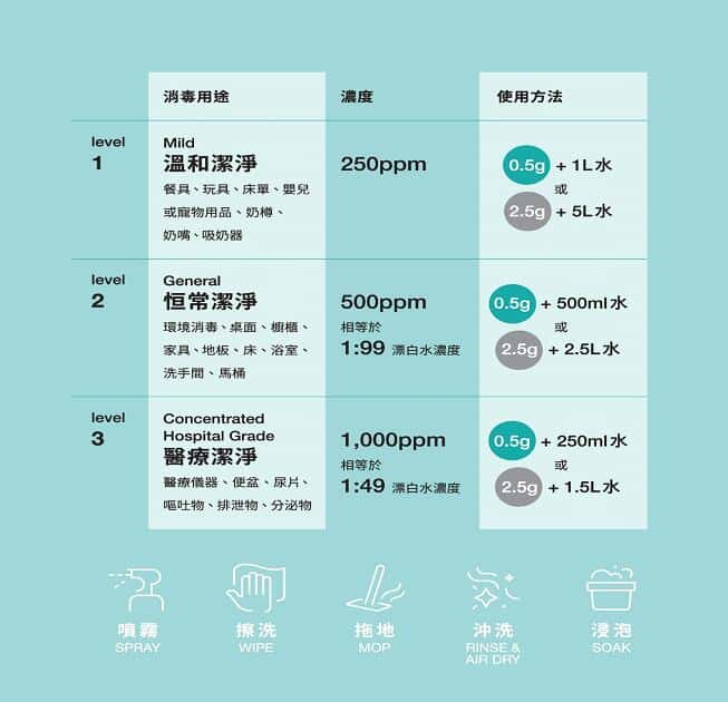 - 簡單 - 方便易用,簡單調配不同ppm濃度