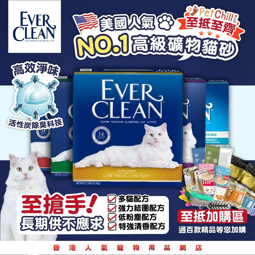 ‧EverClean貓砂是經嚴格挑選的天然礦物質和混合粘土所製,保證天然,純潔和 99.9%無塵,必定深受愛貓喜愛。