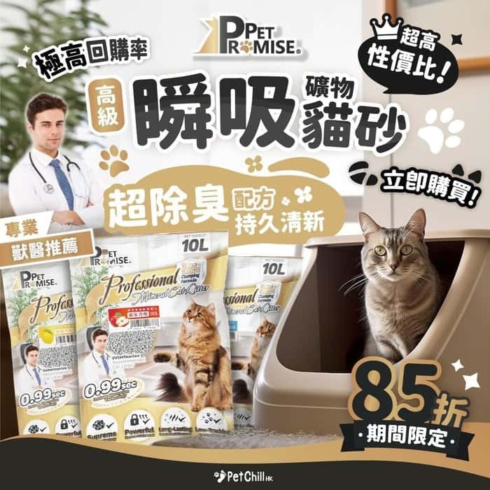 正貨保證!Pet Promise 高級礦物貓砂 爽身粉味 10L (夾袋兩包5L),專為成貓設計。此礦物貓砂強效吸濕除臭,結團快速,低粉塵,為愛貓提供潔淨舒適的如廁環境。Pet Promise 礦物貓砂 香港 熱銷,立即選購尊享免費貓砂罐頭小食! Pet Promise毛孩承諾 高級 礦物貓砂 爽身粉味 10L - 原裝行貨