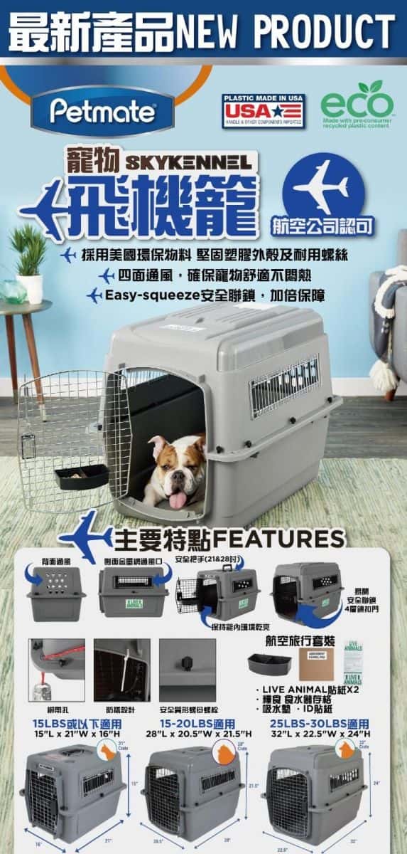 免費送貨!美國Petmate SKY KENNEL 健力時款運輸飛機籠,細碼21"x16"x15",僅重2.7kg,適合15lbs以下貓狗。Petmate寵物運輸籠安全可靠,正貨保證,立即選購! 美國Petmate 健力時款運輸飛機籠 (細) SKY KENNEL (21x16x 15) 2.7kg 滴合15lbs 以下 (00100)
