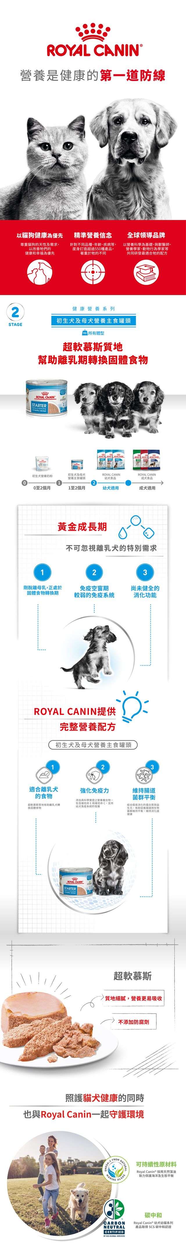 Royal Canin 法國皇家 狗濕糧 健康營養系列 初生犬及母犬營養主食罐頭 初生BB慕絲 195g (3074700)