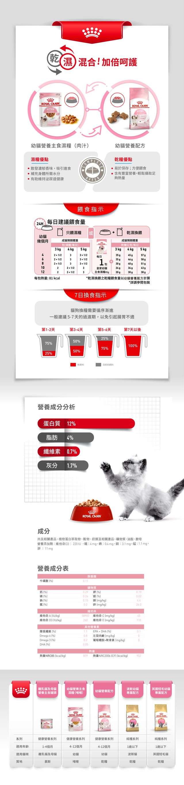 幼貓餵食量 ROYAL CANIN 餵食指南 幼貓濕糧建議 幼貓一天吃幾包