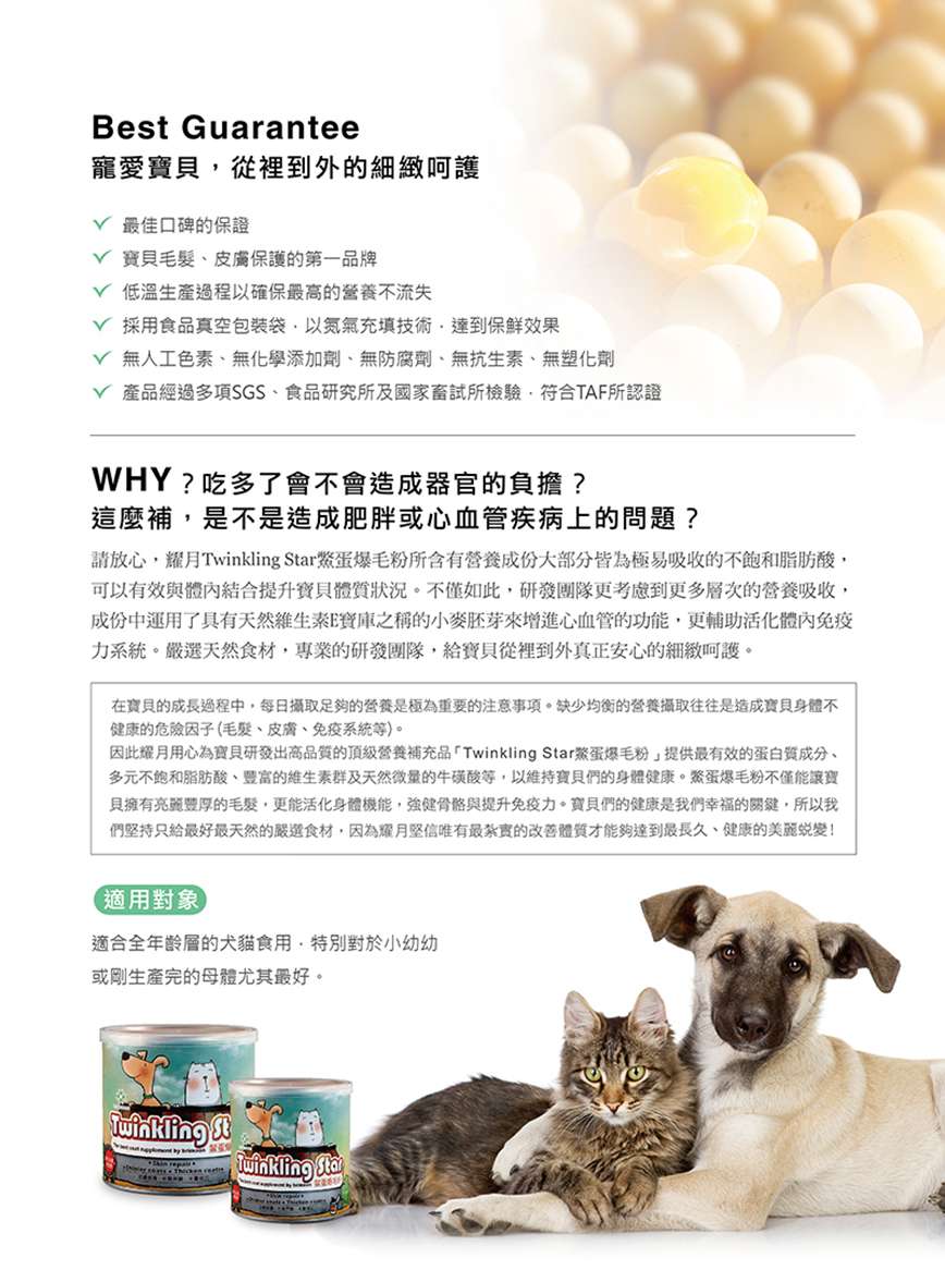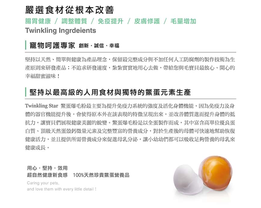 Twinkling Star 台灣鳖蛋爆毛粉【暢銷11年台灣冠軍美毛爆毛品牌,市場銷量排行第一名!】
