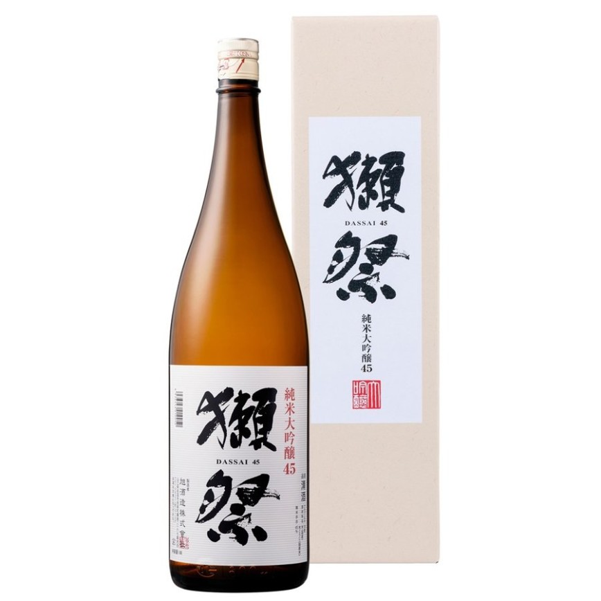 一般指的獺祭清酒就是這款,簡稱獺祭 45,是獺祭最基本的款式,入門定番商品。「四割五分」表示每粒米只取 45% 最精華部分去釀造,酒質特純,釀造出擁有令人驚豔口感的高品質純米大吟釀。前身為日本銷售量冠軍人氣定番品 - 獺祭 50,在原有的精米基礎上再提高了 5% 的精米,呈現出獺祭 45 更加細膩通透的口感。帶果香的清酒在日本酒中不算罕見,但獺祭帶有洋梨般清新的果香卻是其特性。獺祭 45 的精米比率是 45%,讓飲者能同時品嚐果香和米香,而且其價格相對地便宜,讓人喝起來更加暢快!