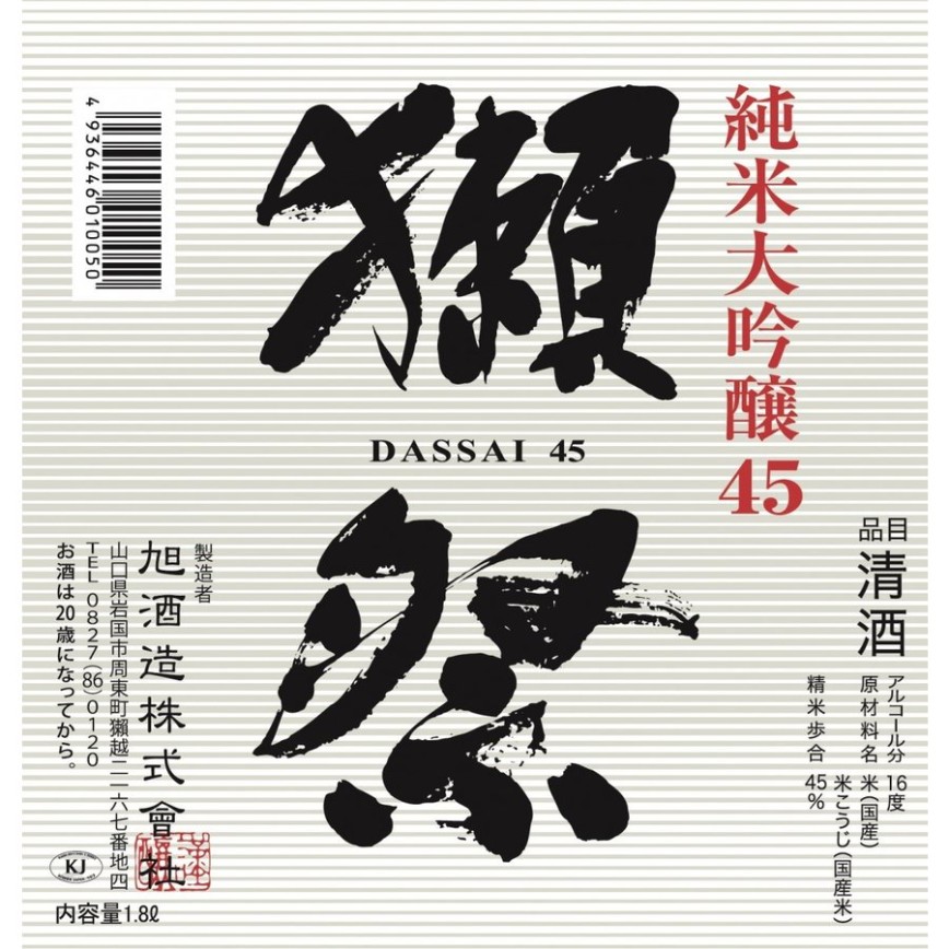 首頁 > > 清酒 Sake > 獺祭 Dassai > 獺祭 四割五分 純米大吟釀 45 1.8L
