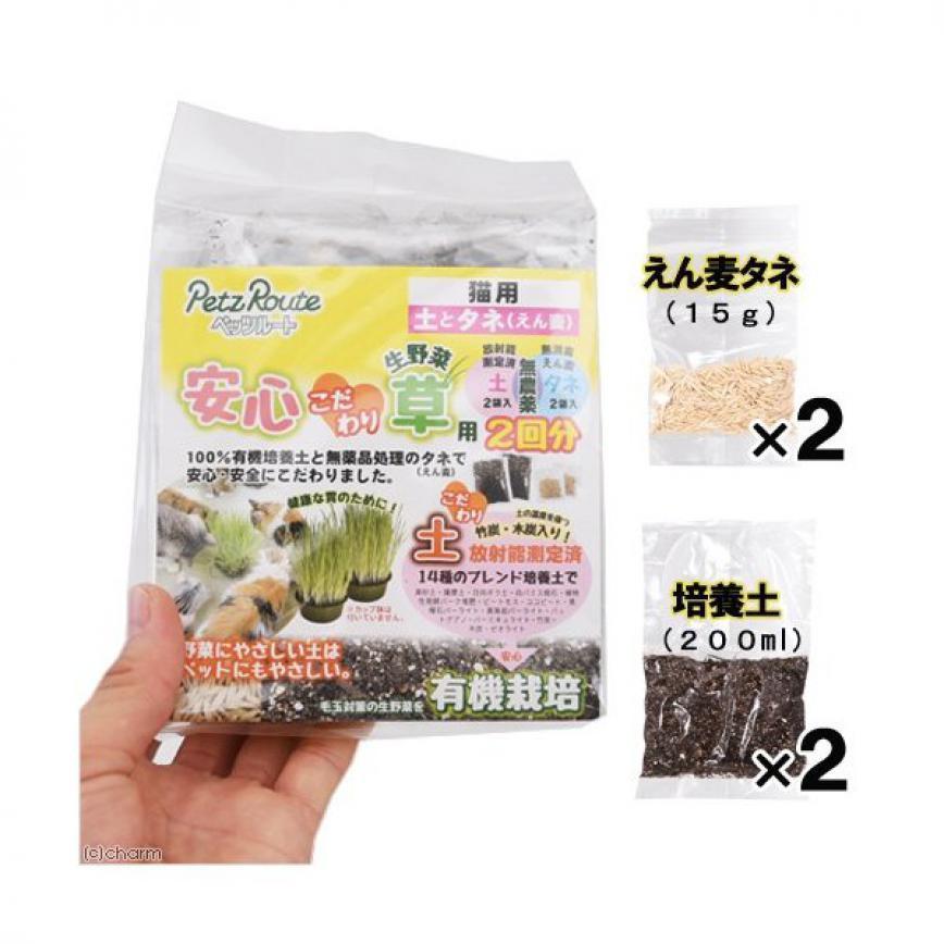 貓咪保健用品-日本Petz-Route-100-有機培養土-安心貓草-2回分-貓咪去毛球-寵物用品速遞