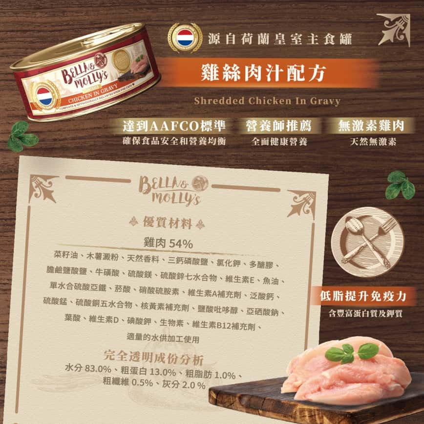 Bella & Molly's 貝莉的產品線豐富多元,旨在滿足貓咪和狗狗在不同生命階段的營養需求,涵蓋了乾糧、濕糧和罐頭等主要類別,每一款產品都承載著品牌對寵物健康的承諾。