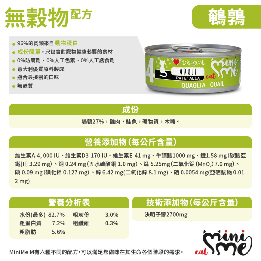 Disugual 意極鮮 貓罐頭 貓主食罐 MINI ME4 無穀物鵪鶉配方 85g (MIME007) | 意大利製造 - 限時試食價