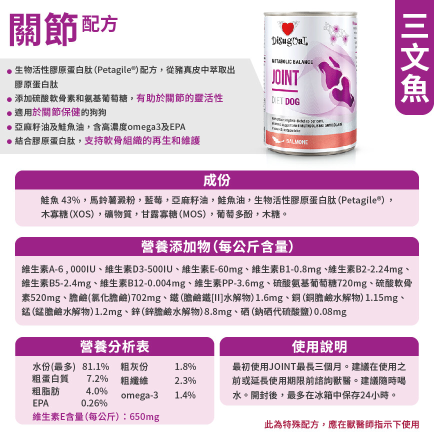 Disugual 意極鮮 處方糧 狗罐頭 關節保健配方 三文魚 400g (DSDT042) | 意大利製造