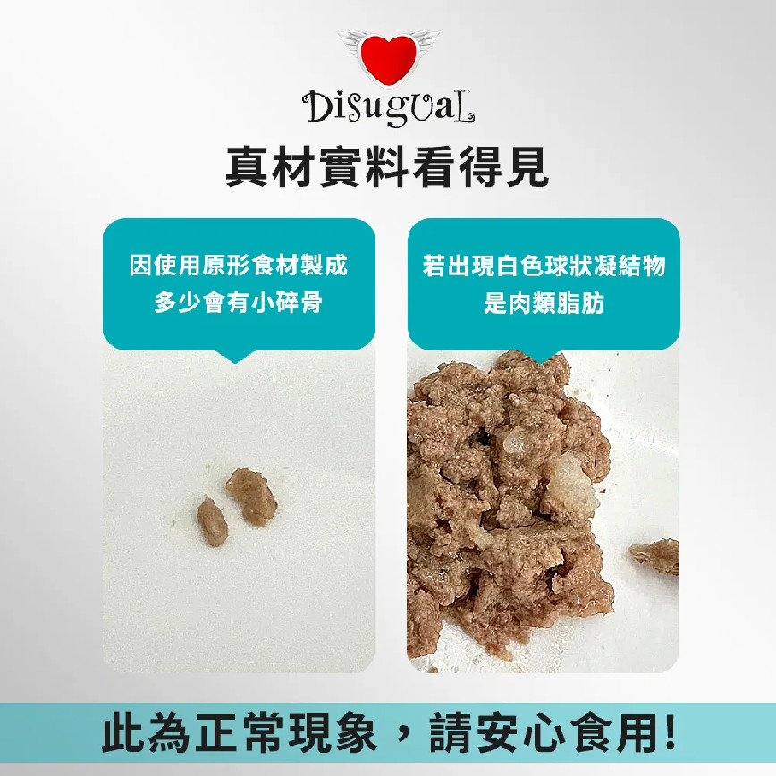 Disugual 的生產設施符合國際領先的衛生標準,採用現代化的生產設備和技術。整個生產過程在嚴格控制的環境中進行,以防止交叉污染和細菌滋生。從原料的預處理、精準的配方混合、適當的烹調溫度與時間控制,到最終的包裝,每一個環節都由專業人員監控,並遵循標準操作程序。特別是對於濕糧產品,品牌採用高溫高壓滅菌技術,在不添加防腐劑的情況下,確保產品的微生物安全性與較長的保質期,同時最大程度地保留了食材的天然營養和風味。