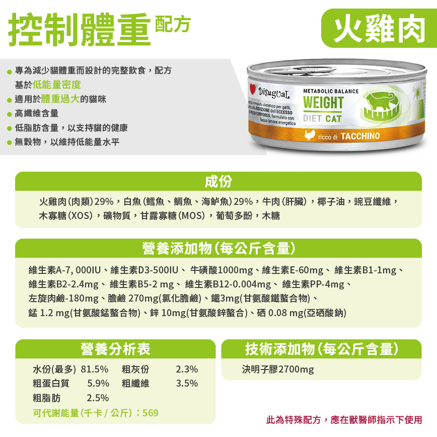 Disugual 意極鮮 處方糧 貓罐頭 控制體重配方 火雞 85g (DSDTG071) | 意大利製造 - 限時優惠價