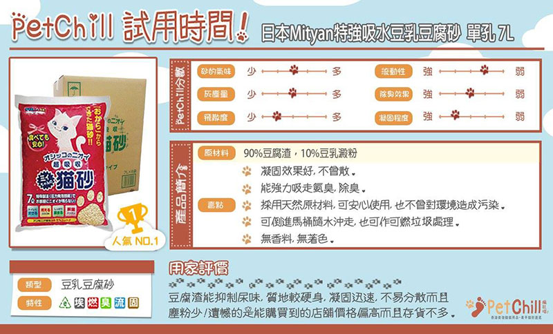 Mityan 的產品線雖然專注於貓砂,但其在細節上的創新與多樣性,使其能夠滿足不同貓咪與主人的需求。其中,「超吸收雙通心豆乳豆腐砂」是 Mityan 的明星產品,也是其技術實力的集中體現。這款貓砂以其獨特的設計和卓越的性能,贏得了廣大消費者的青睞。
