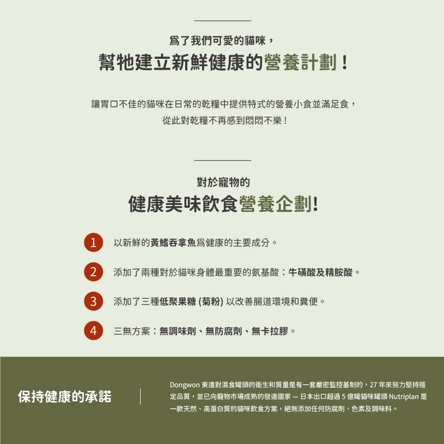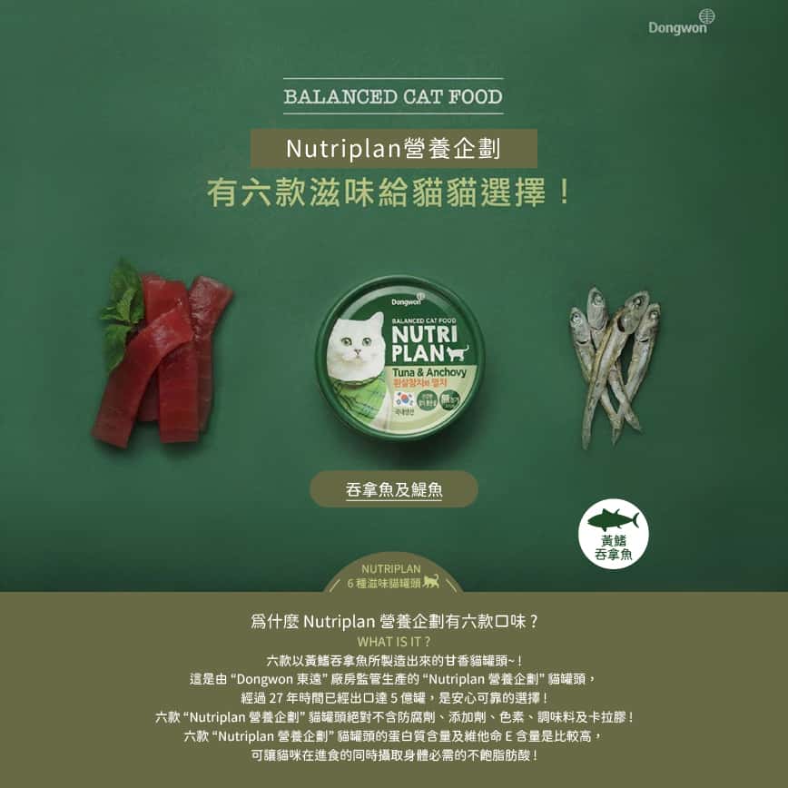 此系列是 Nutriplan 營養企劃 的明星產品,以其「韓國100%人用級別配方」為最大賣點,強調食品的最高安全標準。該系列下的兩款主打產品,均以其精選的天然食材和均衡的營養配方,為全齡貓提供優質的膳食選擇。