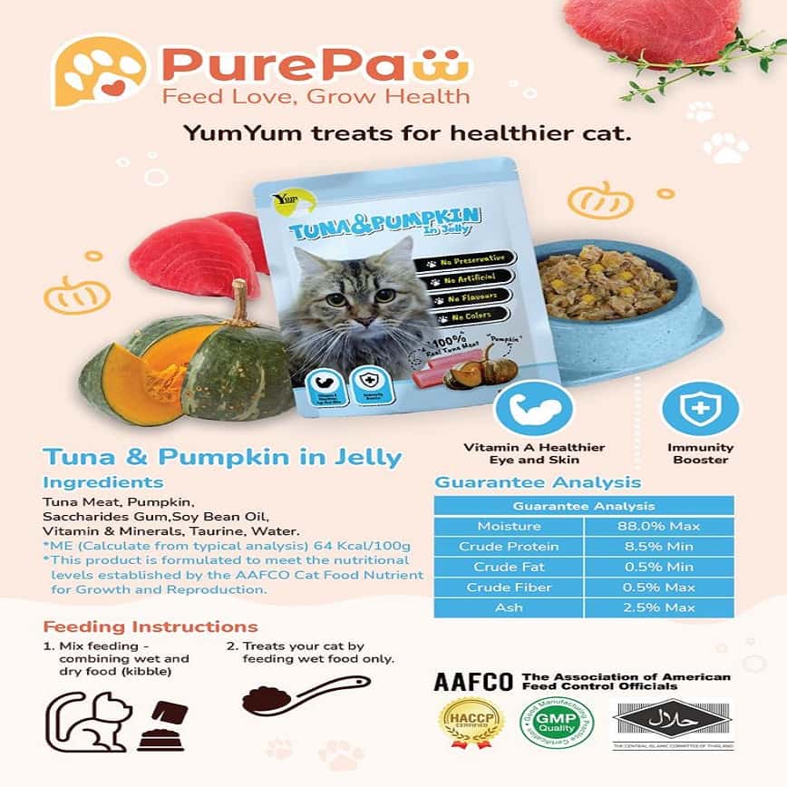首頁 > 貓貓 > 貓罐頭 貓濕糧 > YUM YUM > YUMYUM 主食貓濕包 Tuna & Pumpkin in Jelly 吞拿魚+南瓜 70g
